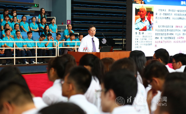 邱勇在一开场就说,今天是第一次讲授研究生新生第一课,希望借此机会与同学们有更深入的交流。他用著名古文字学家、历史学家、老校友季羡林先生的话,引出了对“清华精神“的理解,即永葆青春,永远充满了生命活力,永远走向上的道路。