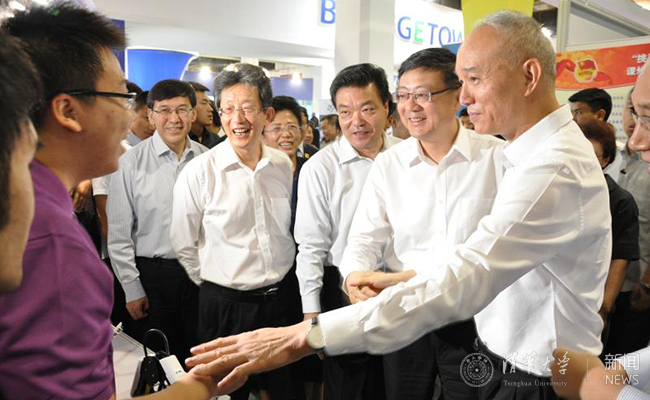 蔡奇和陈吉宁对同学们的科技创新作品予以肯定,并勉励大家继续努力,做出更多成果。