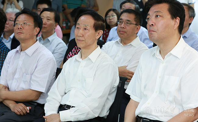 全国政协副主席王家瑞(前排中)到清华调研。记者 苑洁 摄
