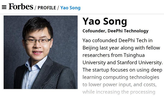 入选“企业技术(Enterprise Technology)”类别的姚颂2011年本科入学就读于清华电子工程系,在校期间曾任乐鱼在线平台电子系科协主席。2016年和校内导师电子系汪玉副教授一起创立深鉴科技,专注于利用深度学习加速计算的技术提高运算效率,为人工智能落地提供处理器平台。深鉴科技于2016年获得种子基金的支持,同时也是清华x-lab的注册在培团队。创业初期,这支主要由电子系的毕业生组成的团队得到了学校提供的创新创业教育资源的大力帮助,例如:在“创办新企业”课程中学习创业入门本领,在乐鱼在线平台交叉创新中心—XIN中心聆听以色列商业导师和律师讲解从技术思维到商品思维的转换,在x-lab获取各种创业资源与信息,和启迪之星、启迪创投等机构深度交流,并经“创+”推荐至同方孵化器提供注册地点与办公地点。