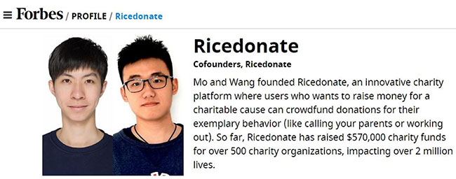 “Forbes 30 Under 30 Asia”是由《福布斯(Forbes)》于2011年创办的,旨在表彰上一年亚洲30岁以下、在艺术、能源、医疗、金融和投资等10个领域做出卓越贡献的30位青年才俊。评选标准包括:领导力和对所在领域带来的颠覆性变化;创业思维和成果;在未来半个世纪改变所在领域的可能性。此次30名评委来自多个领域,包括花旗银行、美国有线电视新闻网(Cable News Network,CNN)等高管以及滴滴出行总裁柳青、创新工场首席执行官李开复等著名企业家。
