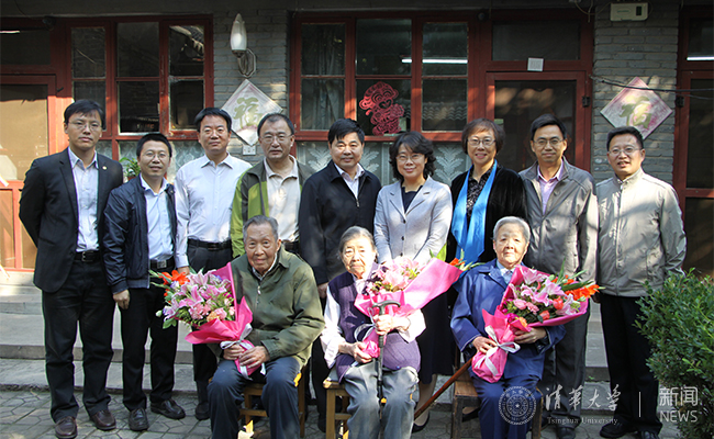 校相关部门负责人与老同志们合影。