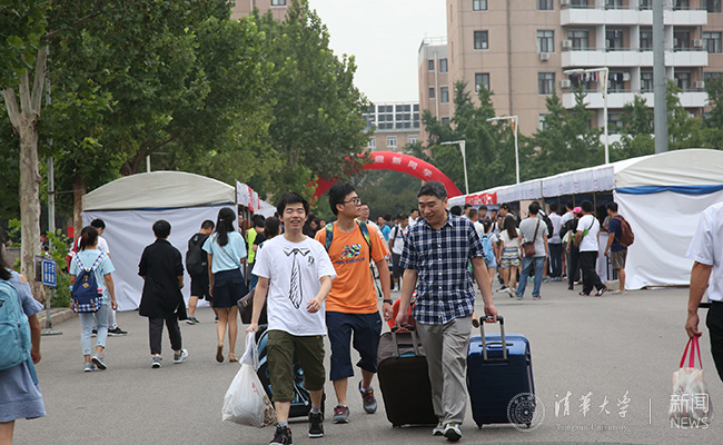 从综合体育馆、院系迎新点到紫荆学生公寓区,新生们处处都能看到热情洋溢的笑脸,得到有条不紊的引导和贴心的帮助。冲洗一新的主干道,飘扬的五彩旗,醒目的彩虹门,憨萌的吉祥物,个性鲜明的院系T恤……每一处温馨的细节都在向2016级本科新生发出同一声问候:“欢迎你,清华园的新主人!”