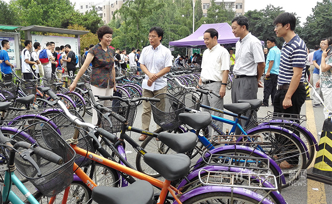 绿色办公室和保卫处首次专门面向新生提供400辆再生自行车,在注册当天排号发放。紫荆4号楼前,工作人员正在为领取再生自行车的新生逐一进行调试。陈旭仔细检查了自行车的性能,并叮嘱同学们注意骑行安全。