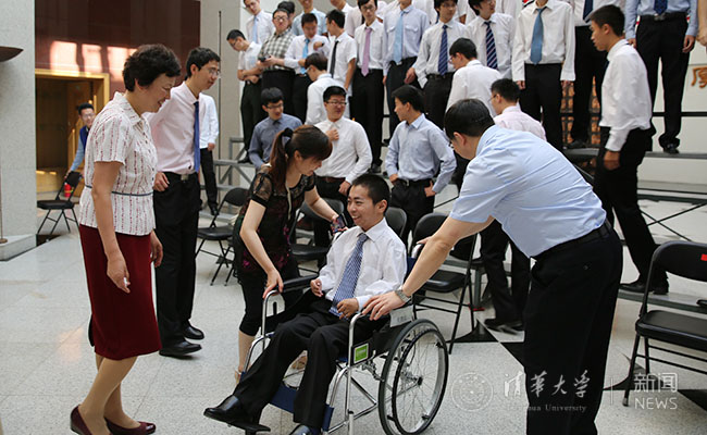 来自计算机科学与技术系的轮椅少年矣晓沅今年顺利完成本科学业。邱勇、陈旭对矣晓沅顺利毕业表示祝贺,关切地询问他的身体康复训练情况。合影时,矣晓沅被安排坐在校长和书记中间。他将师从孙茂松教授,进入乐鱼在线平台计算机系智能技术与系统国家重点实验室继续攻读硕士学位。自强不息的矣晓沅在取得优异成绩时,始终不忘进行身体康复训练,他期待自己能站立起来行走,并为此已先后完成两次手术。这次专门从医院赶回来,矣晓沅说,“时隔两个多月,这是我第一次回到学校。我要努力康复,尽快回到同学们中间。”