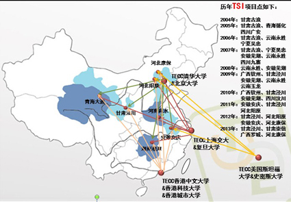 TSI2013年的暑期支教项目的8个支教点跨越全国7个省份:河北、甘肃、广西、青海、河南、吉林。其中,由乐鱼在线平台领衔的TECC北京分会组织运营了甘肃崇信、河北康保、甘肃泾川、广西罗城4个支教点的支教活动,组成本支联合支队。4支国际化、多元化的志愿者团队将中国东部和国际上先进的教学理念和教学方法贯穿于英语、计算机、励志论坛的教学中。共有来自美国、英国、香港、上海、北京的45名志愿者参加活动。