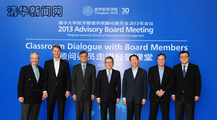 图为学院负责人钱颖一、杨斌与部分走进课堂的顾问委员合影。