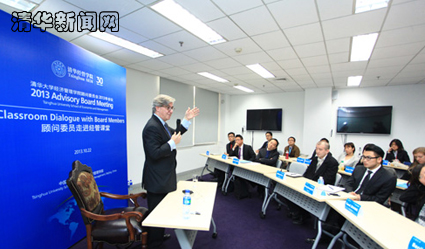 钱颖一教授走访了几个教室,和同学们一起与顾问委员交流。钱颖一说,经管学院希望将“顾问委员走进经管课堂”打造成一个国际化的平台,让学生有更多机会与国际一流的企业家和投资家交流。