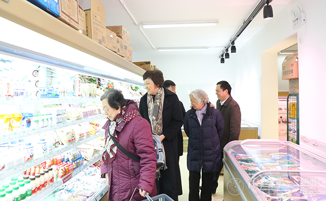 调研中,陈旭等还前往养老服务驿站旁的果蔬超市,了解果蔬肉类供应相关情况。
