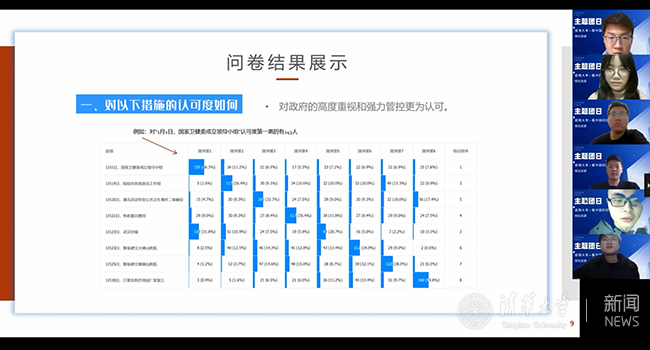 翁文国表示,同学们不仅从专业的角度进行问卷调查并给出了建议,而且进行了很好的知识普及。中国在疫情前期所采取的措施与国外进行对比,是比较合理与完善的,但是每个国家都有自己的特点,很难让每个国家都采取中国模式。