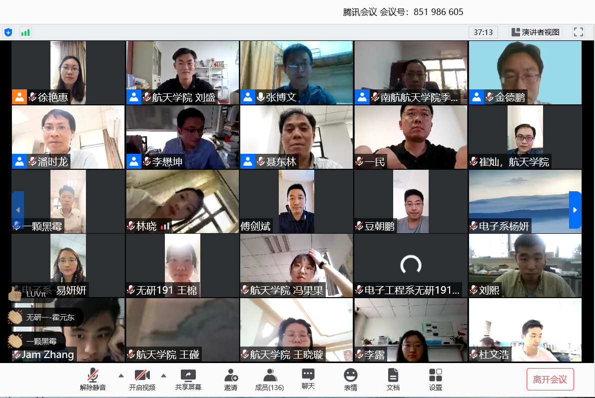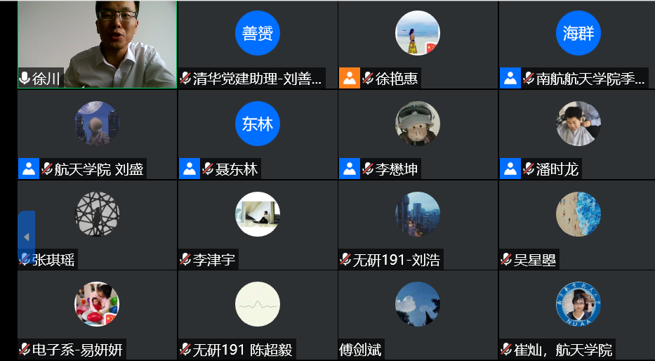 刘盛分享了南航航天学院本科生联合党支部乌克兰留学生党小组的党建工作。疫情期间,乌克兰留学生党小组积极发挥党支部思想引领作用与党员先锋模范作用,主动承担留学生驻地疫情防护工作的同时积极支援国内战“疫”。4月23日,工信部部长苗圩回信南京航空航天大学中乌班学子,肯定他们支援国家抗击疫情的行动,勉励他们弘扬航天精神,练就过硬本领。