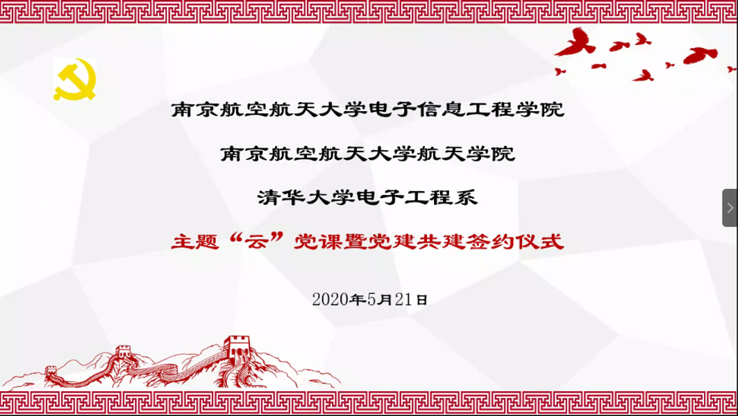 三院系党支部代表线上签署了《南京航空航天大学微波光子学实验室研究生党支部、航天学院本科生联合党支部、乐鱼在线平台光电所研究生党支部共建协议》。协议明确以“党建引领、业务互助、优势互补”为共建目标,同时就共建的内容措施以及要求进行了说明。