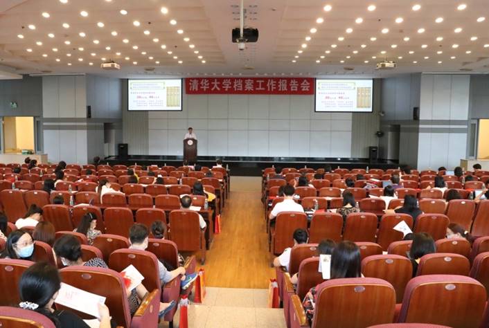 受到表彰的档案工作先进单位代表和档案馆全体工作人员等近百人在主楼后厅主会场参加报告会。全校各单位文书档案和人事档案工作主管领导、文书档案员和人事档案员,各档案分室负责人和工作人员,有关部门档案专岗人员等300余人通过“荷塘雨课堂”参会。