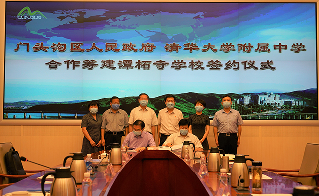潭柘寺镇党委书记娄相峰、镇长李岿然,清华附中副校长解巨钊、白雪峰,党委副书记张洁,党办校办主任党胜军,教育基金会秘书长侯进科等参加签约仪式。
