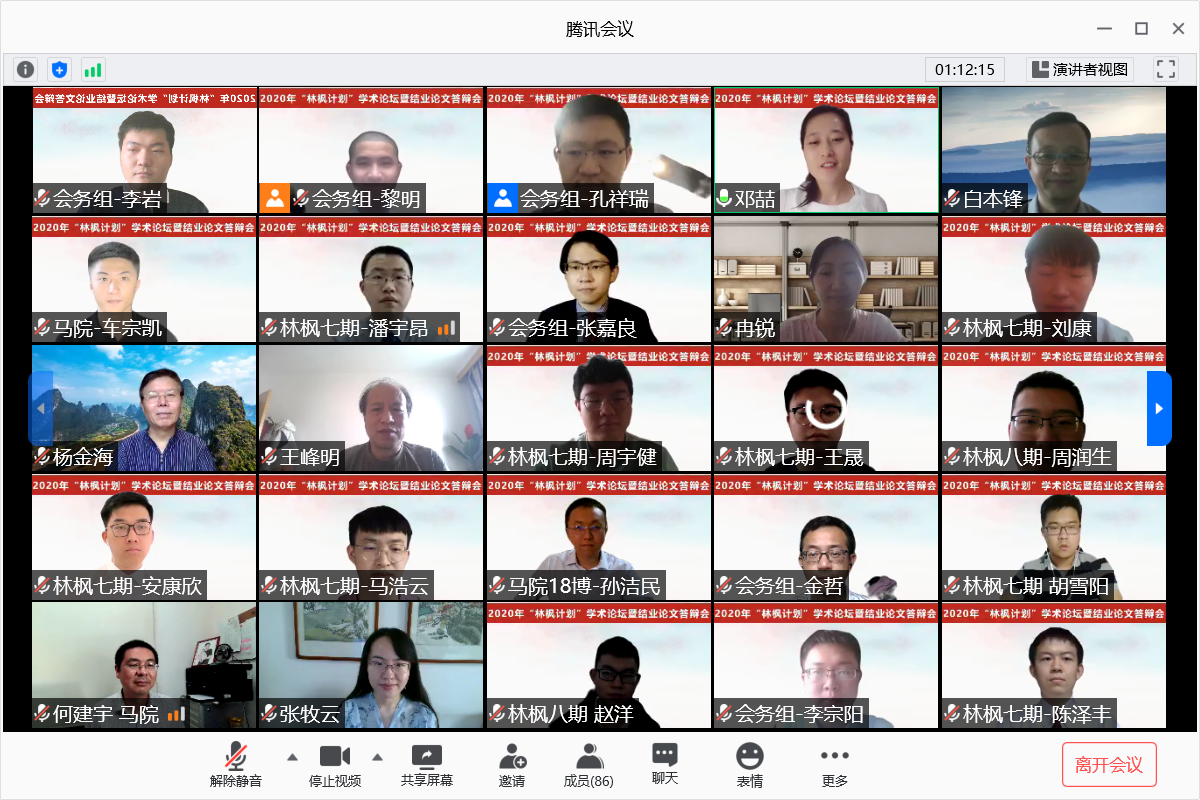 乐鱼(中国)网6月28日电(通讯员 甘文灼 李岩)6月20日,乐鱼在线平台马克思主义理论研究学生因材施教计划(“林枫计划”)学术论坛暨结业论文答辩会在线举行,校党委学生部部长白本锋,马克思主义学院副院长王雯姝、党委副书记何建宇,马克思主义学院教授王峰明、杨金海、王传利等13位“林枫计划”导师、党委学生部部分教师代表以及“林枫计划”第六、七、八期学员等80多名师生参加论坛。
