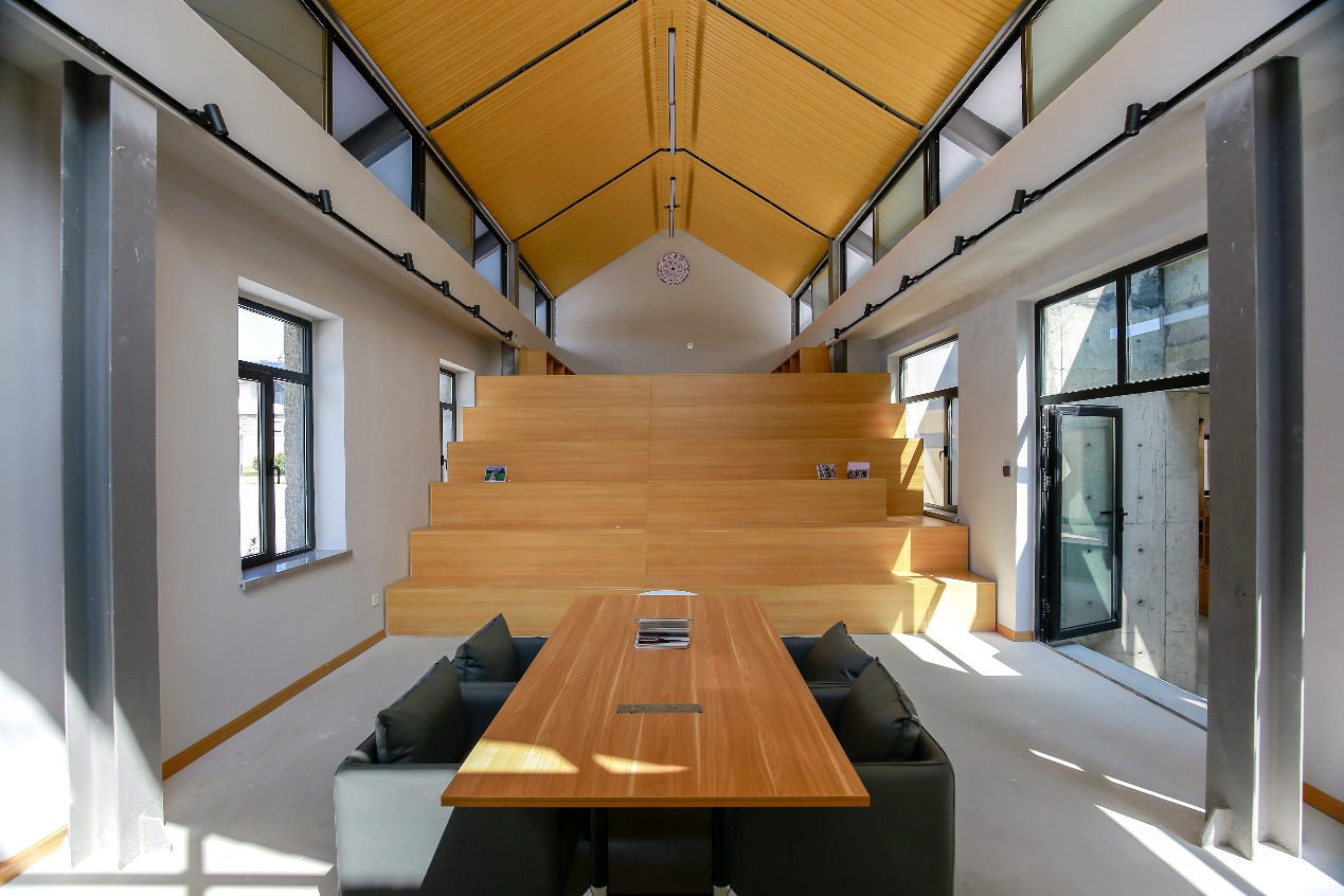 乐鱼在线平台乡村振兴工作站-山东文登站坐落于山东省威海市文登区大水泊镇,由村庄内部的闲置粮仓改造而成,主设计师为建筑学院2018级博士生黄杰。工作站在屋顶上延续原有的屋脊形象,并嵌入大小庭院,引入阳光与景观,让建筑与自然紧密结合。功能上则主要分为北侧的公共版块、中部工作版块以及南侧生活版块三大功能区。