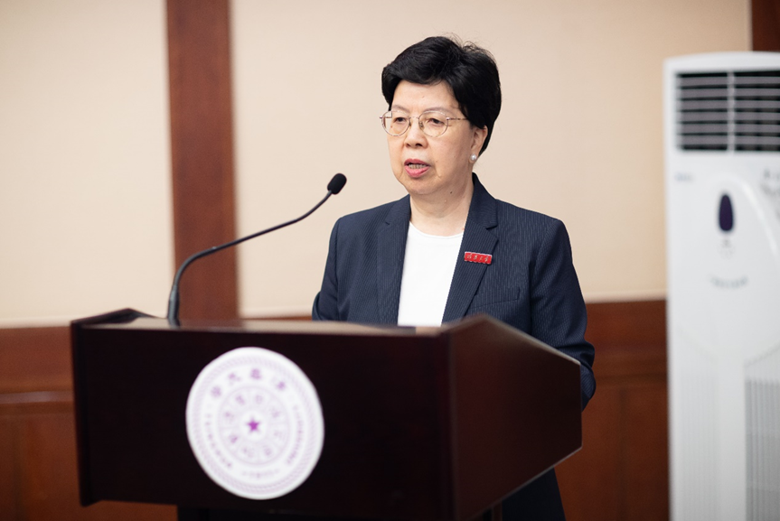 陈旭还表达了对学院未来的美好祝愿。她期待并相信,在陈冯富珍院长的领导下、在梁万年教授和卫健学院师生的共同努力下、在全校各单位的支持下,学院一定能够扬帆起航,成为全国乃至世界一流的、有引领作用的公共卫生与健康学院。