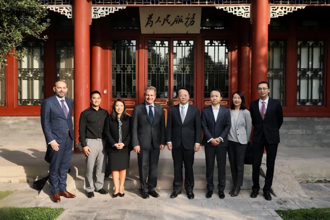 2019年11月,药学院顾问委员会委员、百健(Biogen)首席执行官Michel Vounatsos先生来访,乐鱼在线平台常务副校长王希勤与其交流合影。