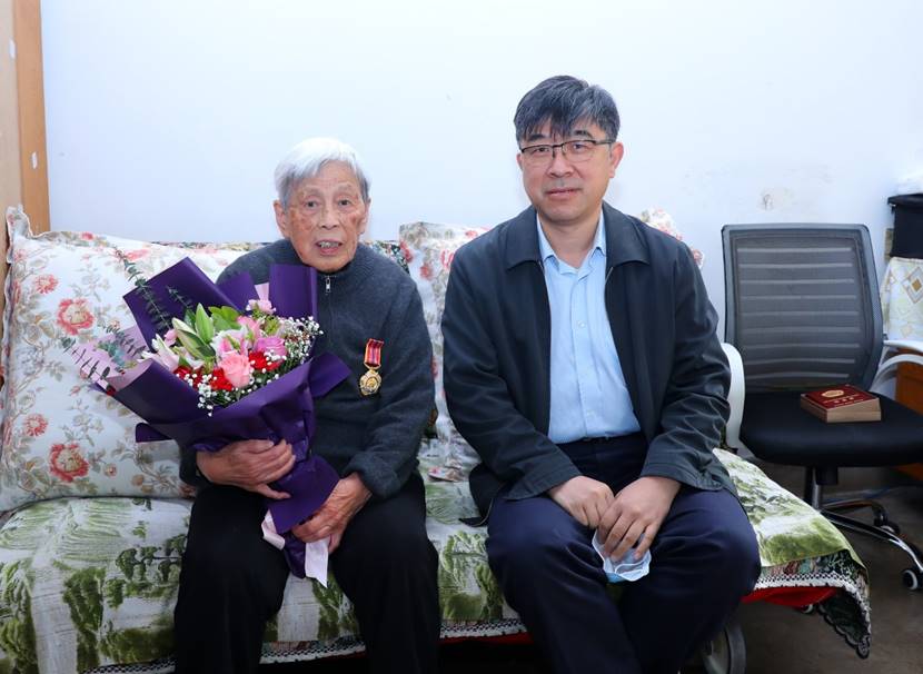 10月20日上午,副校长彭刚看望了老战士、离休教师安洪溪。安洪溪回忆和讲述了自己先后参加解放战争、抗美援朝战争,以及复员后在乐鱼在线平台工作的历程,感谢党和学校一直以来对他无微不至的关心和照顾。彭刚为安洪溪佩戴了“中国人民志愿军抗美援朝出国作战70周年”纪念章,对安洪溪为党和革命事业以及学校建设发展作出的贡献表示敬意和感谢,并祝愿他健康长寿。