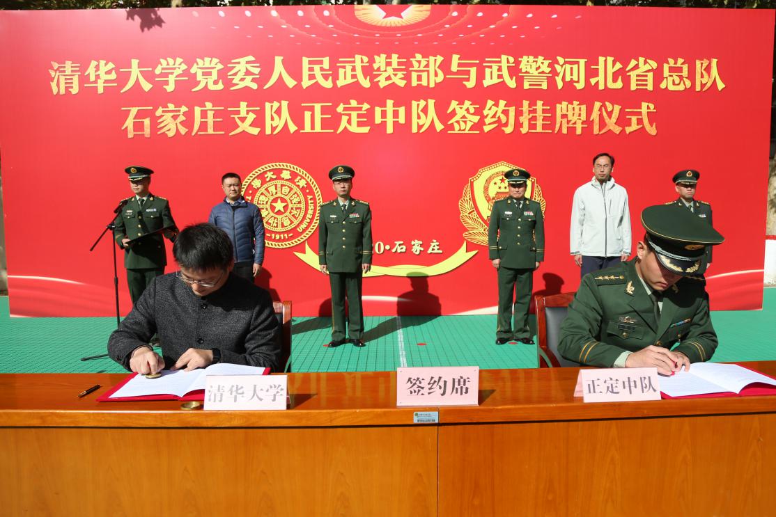 仪式后,清华师生与武警正定中队官兵举行座谈会。武警石家庄支队政治委员侯爱华介绍了武警石家庄支队的整体情况,肯定了清华退伍士兵靳发兴在正定中队服役期间的优秀表现,希望双方今后不断加强交流合作,建立更加紧密的联系。邓宇表示,本次签约是近年来清华首次与武警部队基层中队开展合作,对于学校的国防教育工作具有重大意义。曾于2018-2020年服役于正定中队的化工系本科生靳发兴在座谈交流时表示,非常感谢中队两年的培养和教育,武警正定中队锻炼了他坚韧不拔的品格和矢志不渝的精神,褪下军装的他,也一定会将这种“不怕苦、不怕累”的精神带到校园生活和学习中。