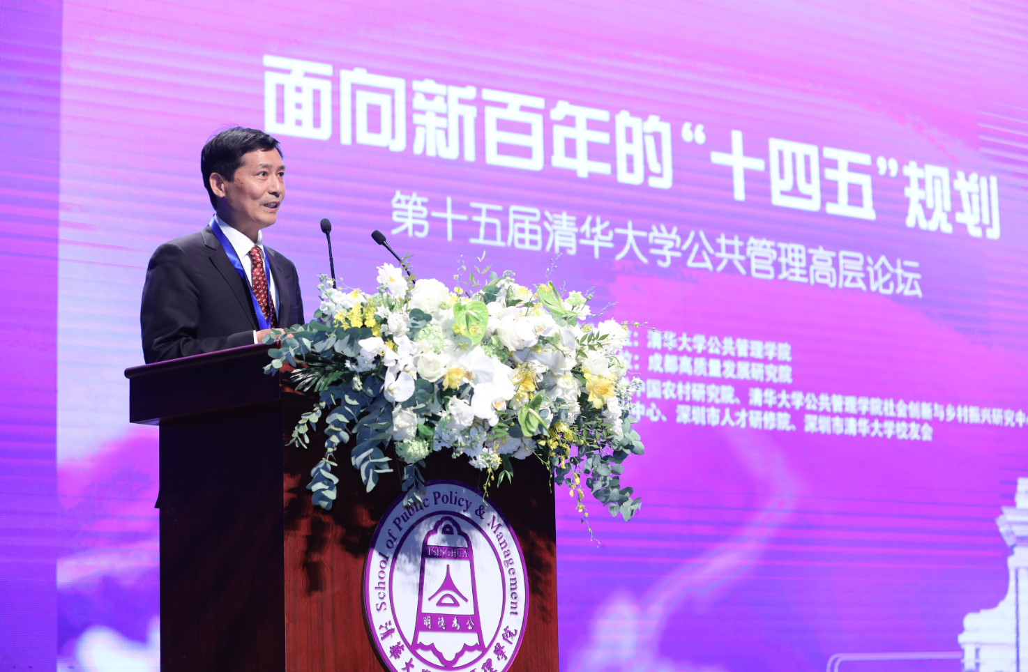 江小涓在致辞中表示,刚刚闭幕的党的十九届五中全会是一次具有里程碑意义的重要会议,将对中国,乃至世界的发展产生深远的历史影响。学习、贯彻、落实十九届五中全会精神,是当前最重要的政治任务。她希望大家以本次高层论坛为契机,展开深入的学习与探讨。她还希望清华公管人加强对“十四五”规划和2035年远景目标的研究,为推动我国治理体系和治理能力现代化进程贡献清华公管的力量,为构建人类命运共同体发出清华公管的声音。