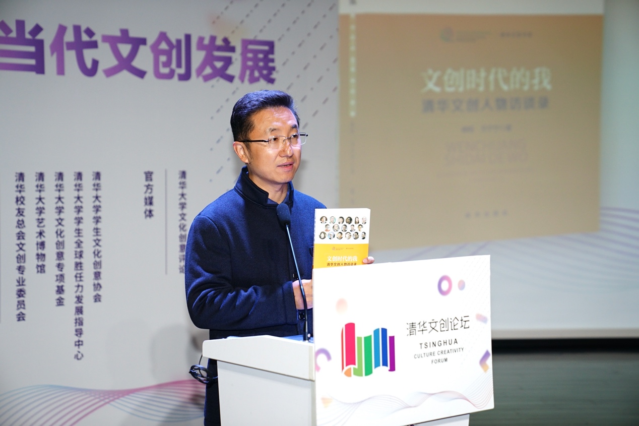 论坛上,进行了《文创时代的我——清华文创人物访谈录》新书首发仪式,胡钰作为主要编撰者与大家分享了书籍的编写过程。他认为,中国文创事业的发展面临一个前所未有的好时代,要能推动文创事业发展,需要大批懂文化、懂科技、懂经济、懂社会的复合型人才。在清华的校友中,有许多这样的优秀文创人才,把他们的经历和思考写出来,对于清华的文创人才培养乃至全社会的文创人才培养,都是大有裨益的。