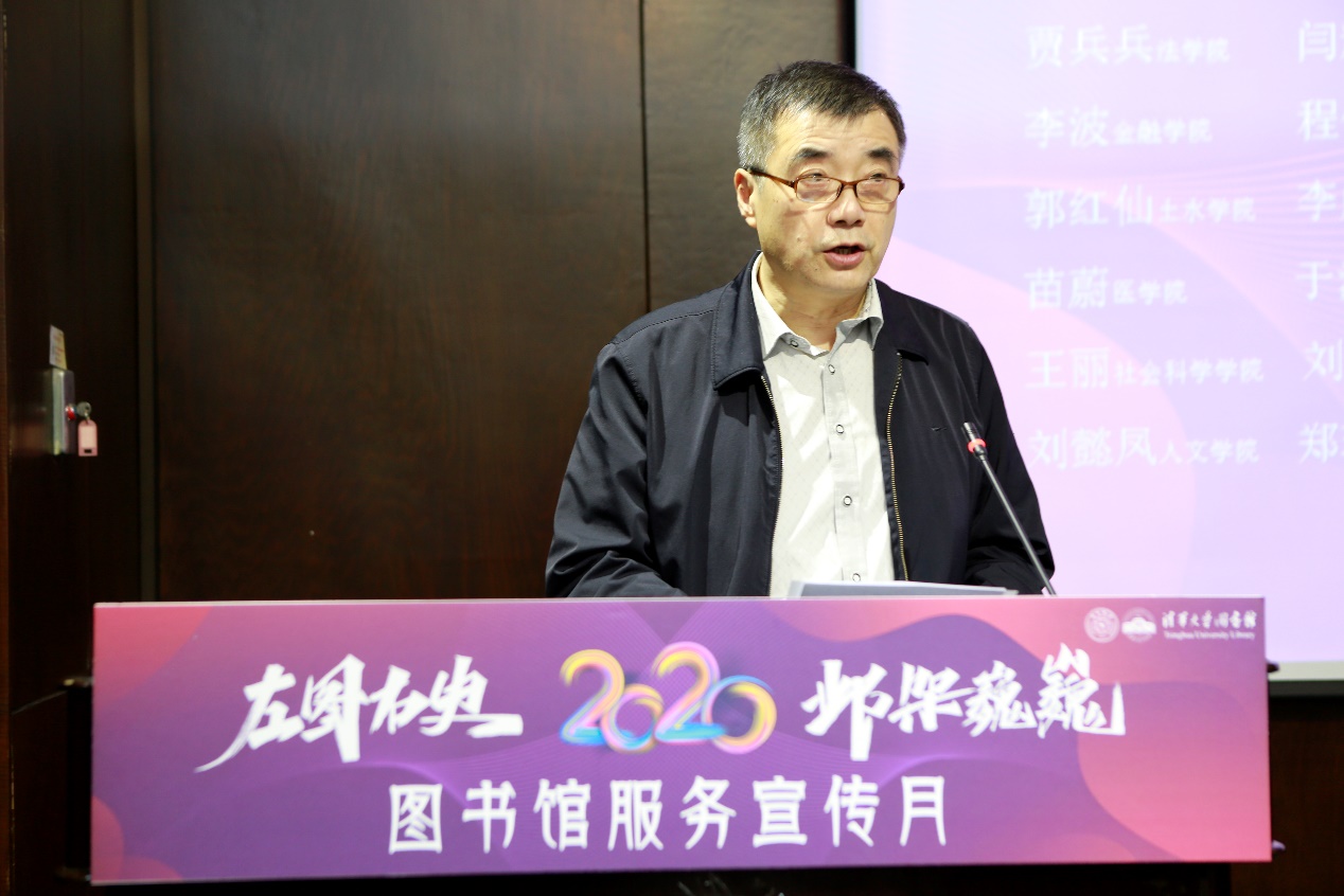 开幕式上,彭刚表示,图书馆是一所大学灵魂之所在。图书馆给很多清华师生留下了宝贵的记忆。随着学校的发展,图书馆各方面都有了很大进步。一直以来,图书馆努力为全校师生做好各项服务和支撑工作,特别是在今年疫情期间,图书馆全力保障线上教学和网络资源远程访问,为清华师生学习和研究提供了全力保障和有力支撑。最后,彭刚希望广大师生不仅要利用好图书馆,更要以主人翁的姿态参与建设图书馆;希望同学们在专业学习之外,要拥有开放的心态和开阔的视野,养成热爱阅读和终身学习的习惯。