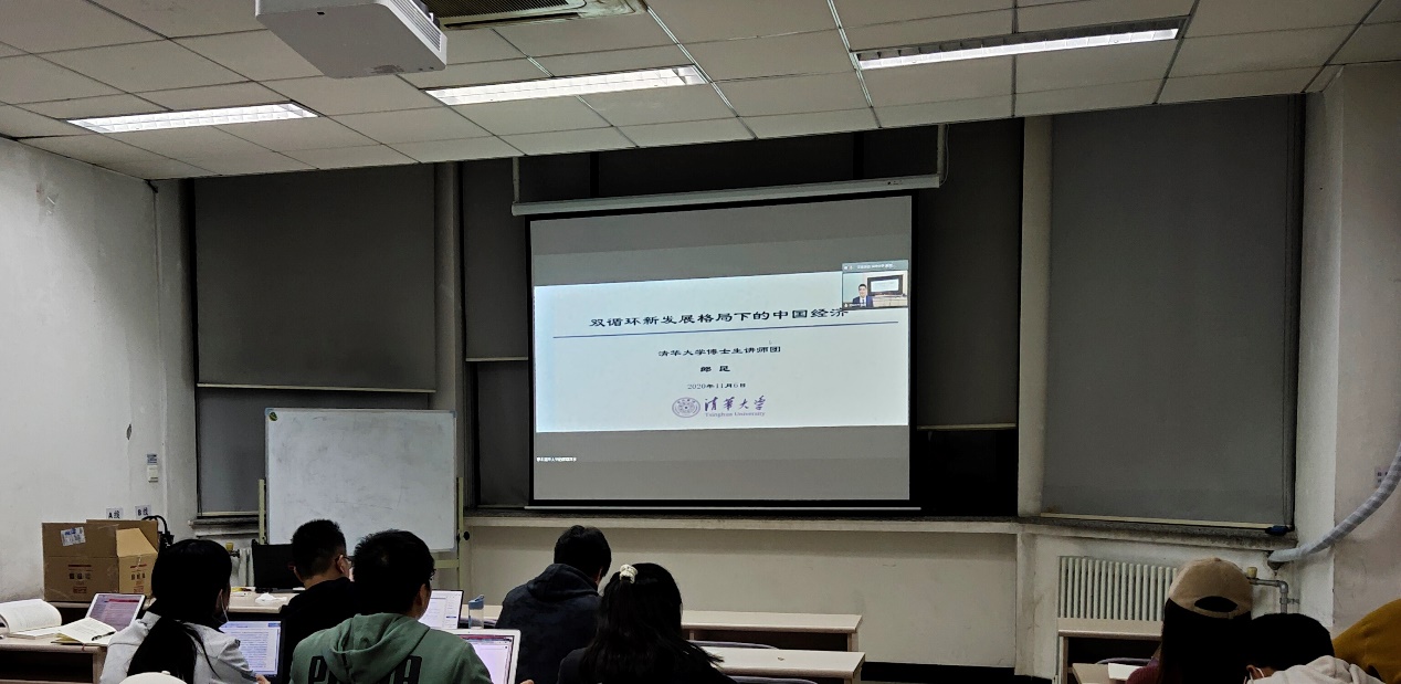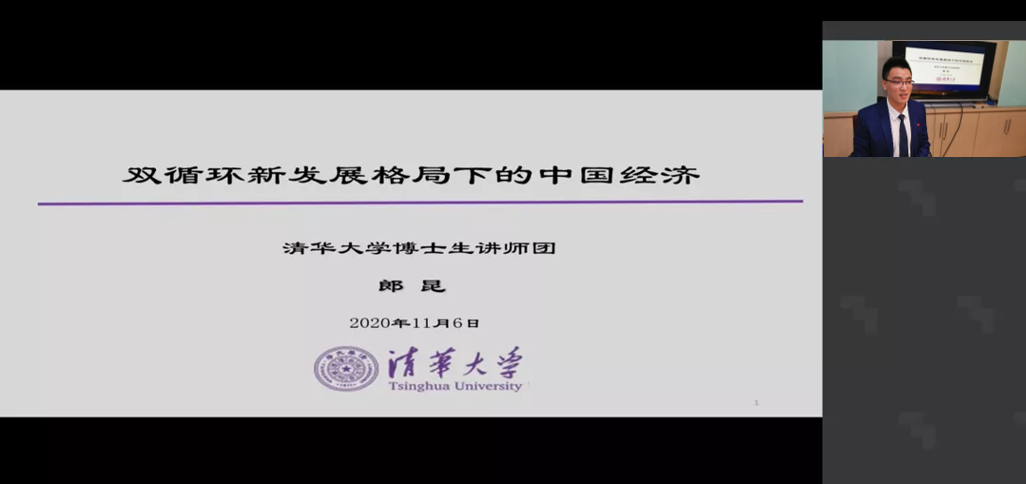 乐鱼在线平台经济管理学院2018级博士生郎昆以经济建设为主题,进行了题为“双循环新发展格局下的中国经济”的宣讲。他在宣讲中回答了三个问题:什么是双循环新发展格局,双循环会带来哪些变化以及如何调整政府与市场关系。