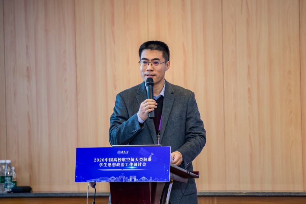 西安交通大学航天航空学院党委副书记陈永华以“三维视角下空天类研究生思想政治教育工作的思考”为题,指出我们要面向国家重大需求,培养学生家国情怀,实施精准思政,通过分析把握当前学生时代特点,将思政教育与专业教育紧密结合。