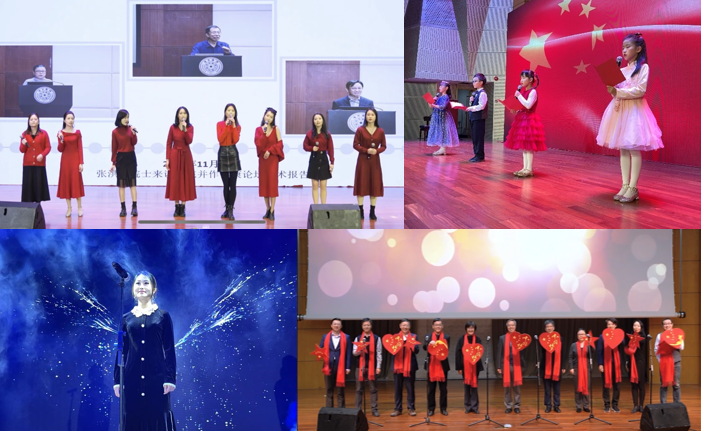 随后,晚会演出节目正式开始。院教职工舞蹈协会开场新疆舞《欢乐的跳吧》以异域风情引爆全场,点燃了气氛。信息学部老师们带来了磅礴大气的经典歌曲《我和我的祖国》为大家贺新年,悠扬熟悉的旋律带动了荧幕前观众的热情,激起了观众满腔的爱国热血。