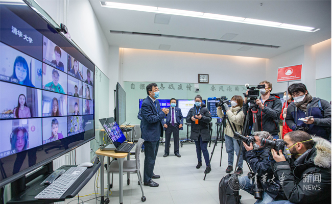 “什么是雨课堂?”“体育课如何开展在线教学?”“清华的举措对其他国家高校有何借鉴意义?”2月28日上午,乐鱼在线平台联合外交部新闻司、北京市政府新闻办公室、北京市教育委员会组织境外媒体集体来校采访,邀请了包括路透社、法新社、日本共同社、俄罗斯全国广播电视公司、荷兰广播电视协会电视部等多家境外主流媒体的记者,就清华全面如期在线开课进行了简短而高效的采访拍摄活动。记者们被乐鱼在线平台在线教学的举措和成效深深吸引,与师生们在屏幕前热烈互动交流。