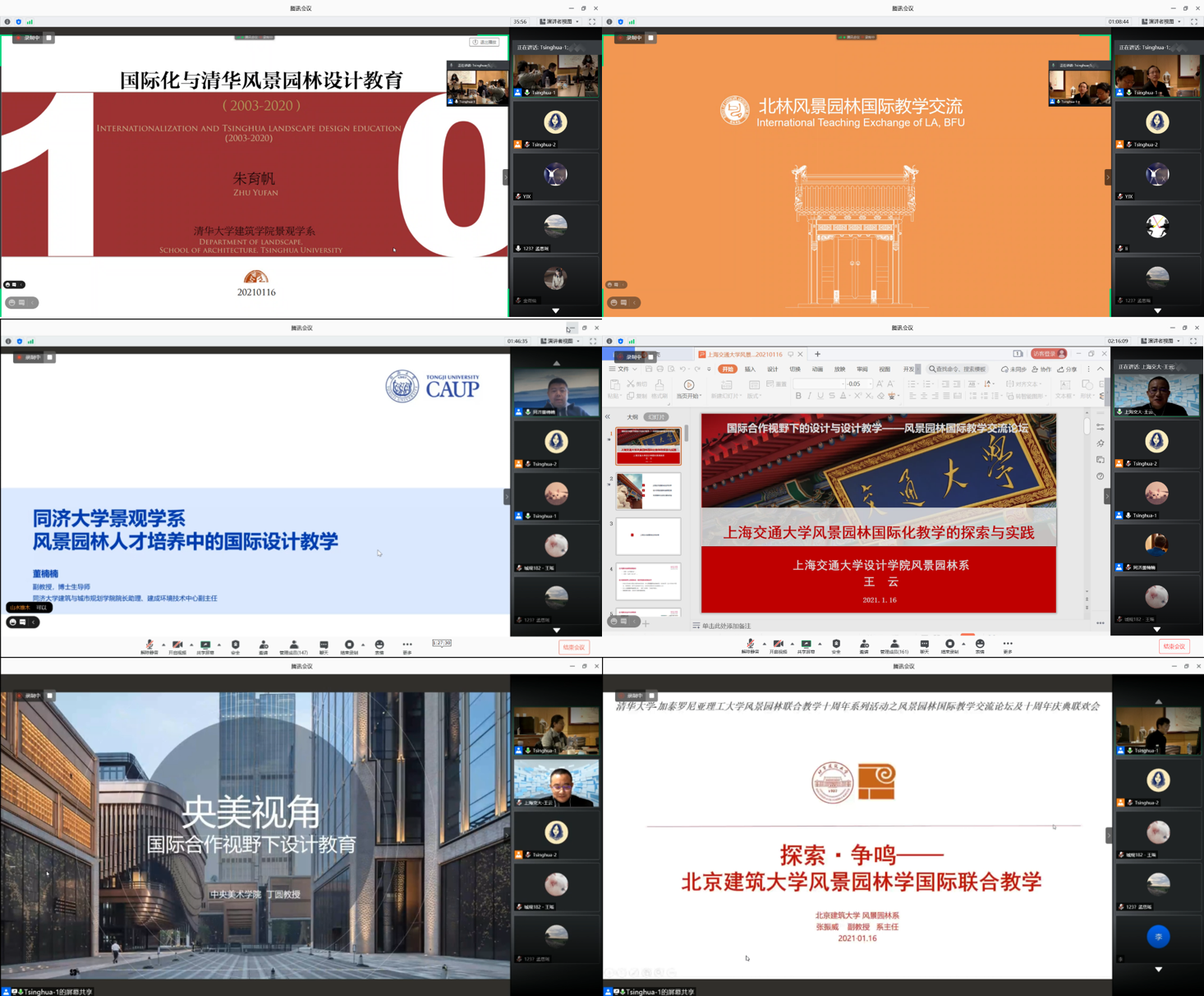 “国际合作视野下的设计与设计教学”风景园林国际教学交流论坛以联合教学十周年的经验为引,旨在促成各高校教育理念与经验方法的交流、探索疫情影响下的国际合作特征与转变。乐鱼在线平台建筑学院景观学系副系主任朱育帆教授、北京林业大学园林学院副院长郑曦教授、同济大学建筑与城市规划学院院长助理董楠楠副教授、上海交通大学风景园林系系主任王云教授、中央美术学院景观学系系主任丁圆教授、北京建筑大学风景园林系系主任张振威副教授与会发表主旨演讲,来自全国30多个高校的近200人线上参会。