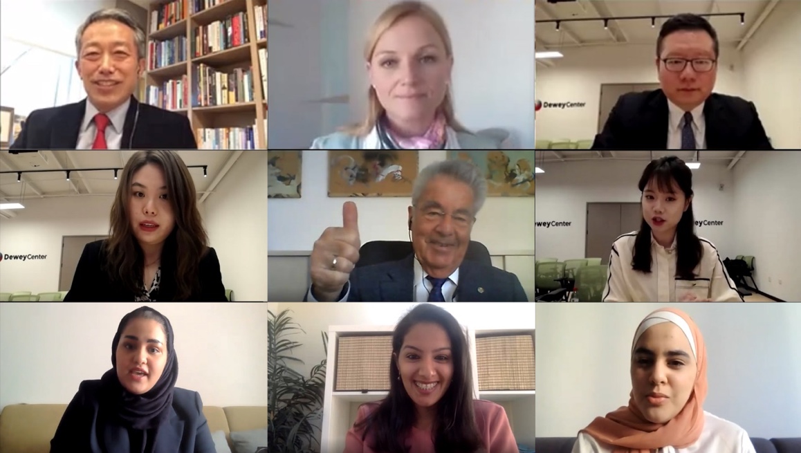 乐鱼(中国)网4月1日电 3月26日,在全球节能活动“地球一小时”前日,由中国外文局国际传播文化中心、杜威中国中心和潘基文中心联合主办的“同住地球村:可持续发展与青年责任”全球对话主题活动在杜威中国中心举办。乐鱼在线平台新闻学院博士生景嘉伊作为中国青年代表,结合巴西调研经历,以“热带雨林的开发与保护”为主题进行发言,与奥地利前总统海因茨·菲舍尔(Heinz Fischer)、联合国原副秘书长金垣洙(Kim Won-Soo)、潘基文中心首席执行官莫妮卡·弗雷勒(Monika Froehler)等嘉宾就全球治理视角下的发展中国家参与可持续发展建设的权利与义务问题进行了探讨。来自科威特、沙特阿拉伯、奥地利等国的青年代表一同线上参与了对话活动。