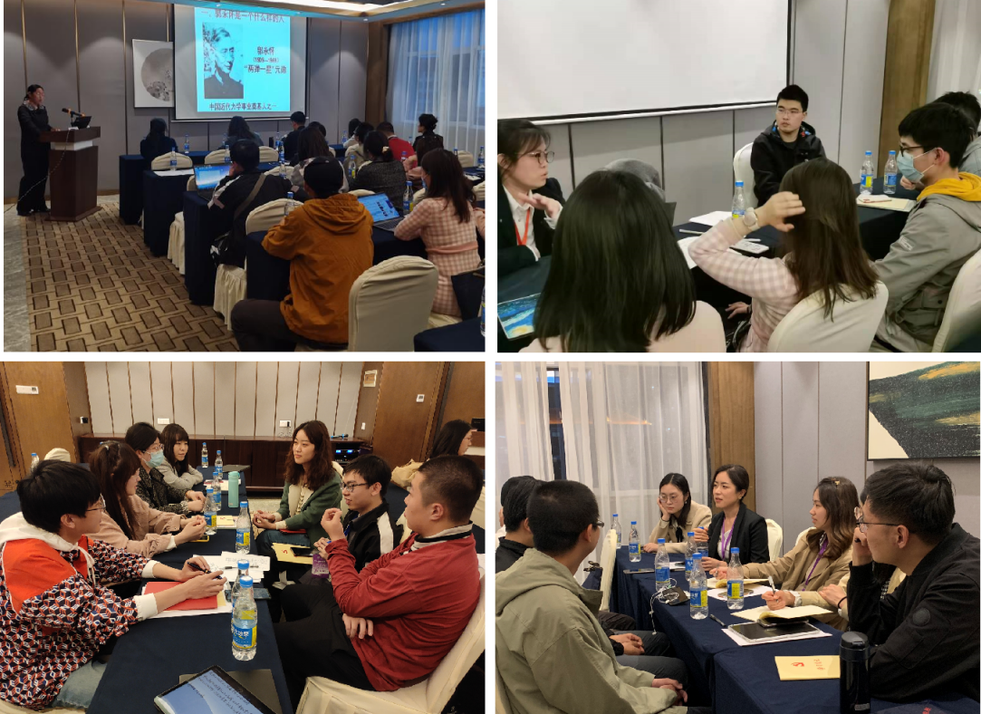 张达(左上)、兰旻(右上)分别作主题报告及新老学员(右下、左下)代表发言