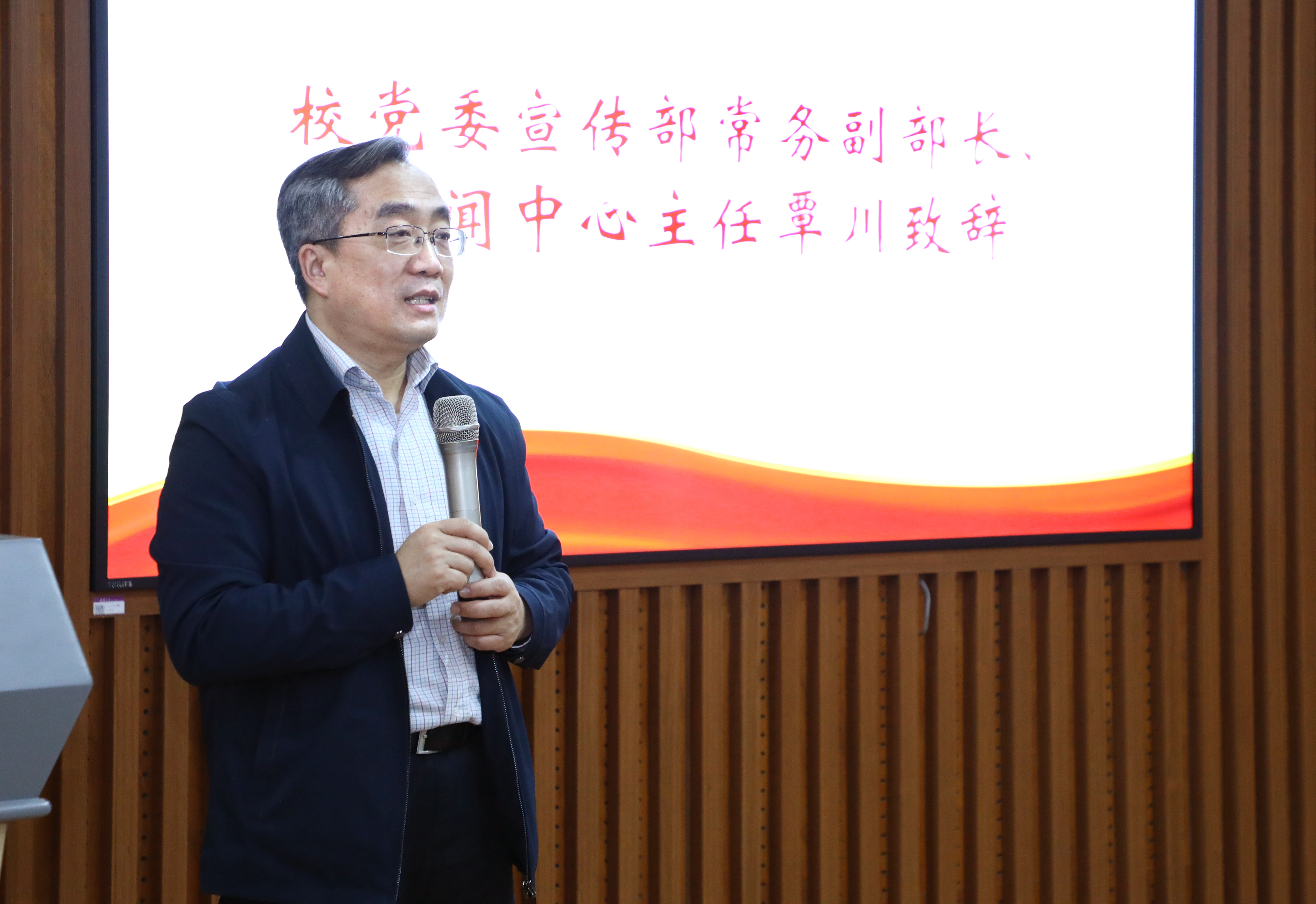 覃川在致辞中介绍了党史学习教育的相关背景与学校党委关于党史学习教育的部署安排。他希望大家利用好参加党史学习教育专题宣讲的契机,学好党史、讲好党史、用好党史,将学理知识转化为爱党热情和理想信念,把党史中蕴含的“光”和“热”传达给更多受众,把党史宣讲同个人的学业进步和人生道路结合起来,不断从党史中发掘宝贵资源,以更宏观的角度思考社会变化趋势及世界新格局,在时代的变革中找准个人与社会互动发展的坐标。