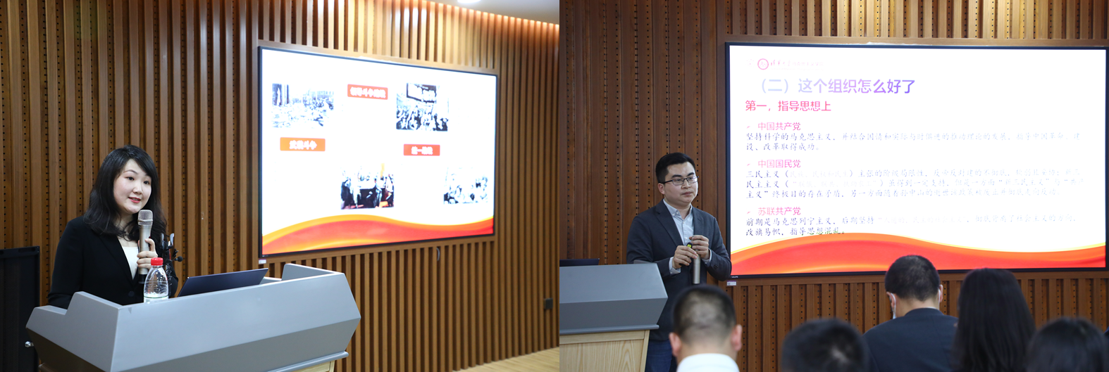 专题宣讲团成员、马克思主义学院2018级博士研究生李玓、2020级博士研究生宋金分别围绕“道有夷险,笃行致远——中国共产党百年抉择”“中国共产党:比较和抉择中的飞跃”两个主题进行宣讲。宣讲结束后,覃川、何建宇分别对两位同学的宣讲进行了点评。