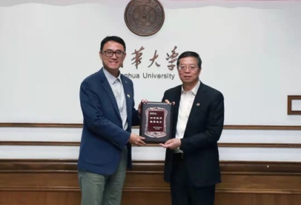 仪式上,朱一明、舒清明、程泰毅、邓禹、何卫、胡洪分别与袁桅签署捐赠协议。邱勇向六位校友依次颁发捐赠纪念牌。