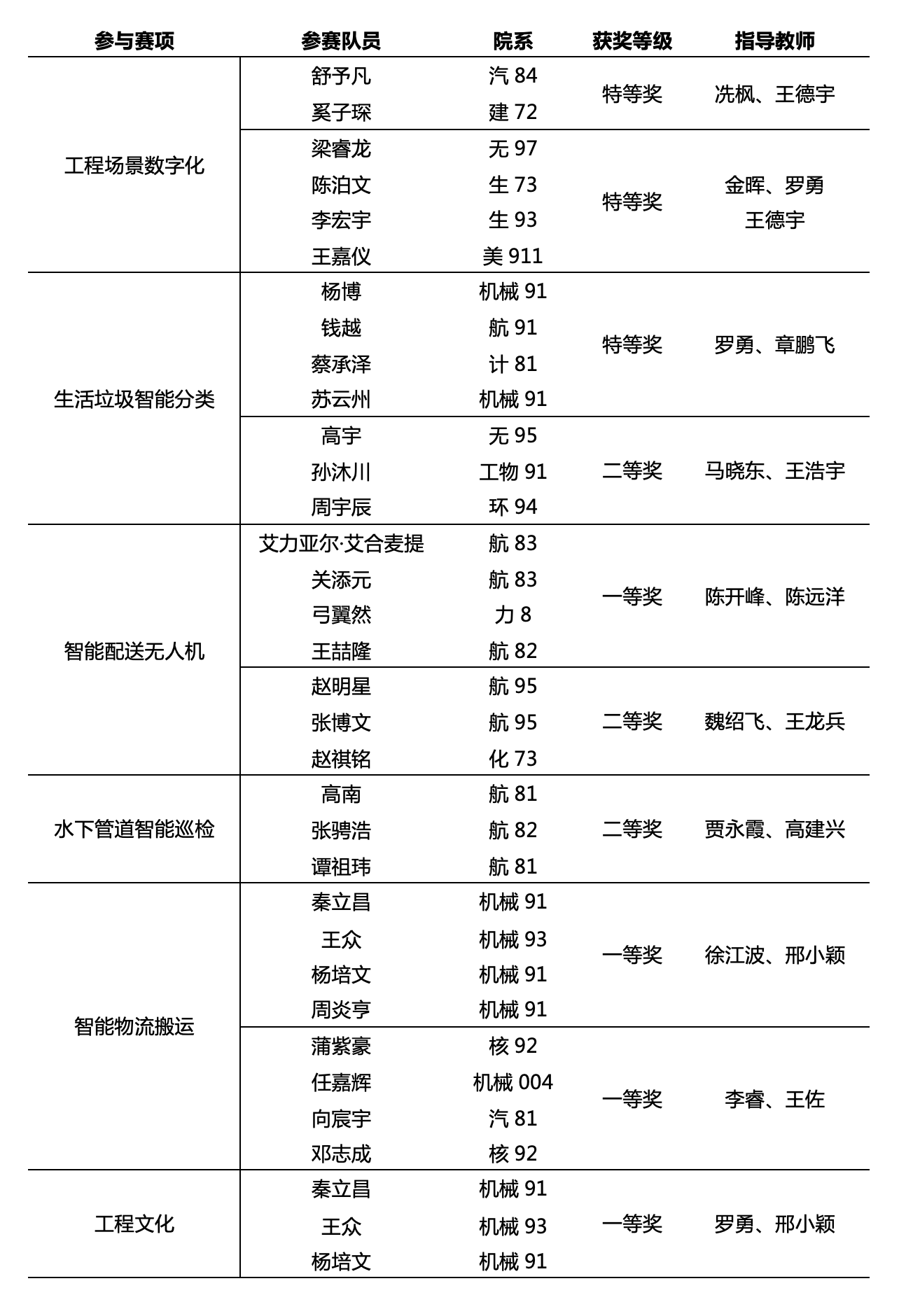 本次大赛以“守德崇劳工程创新求卓越,服务社会智造强国勇担当”为主题,共设置了工程基础、“智能+”、虚拟仿真和工程创客四个赛道与13个赛项。乐鱼在线平台iCenter通过在《制造工程体验》CC01-课赛结合单元课程中引入了综合性较强的项目,不断完善教学方案,并举行了校内选拔赛。选拔赛产生了10支参赛预备队,分别参加了智能物流搬运、水下管道智能巡检、生活垃圾智能分类、智能配送无人机、工程场景数字化、工程文化等6个赛项,10支赛队全部获得大赛奖项。
