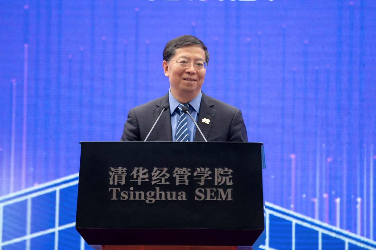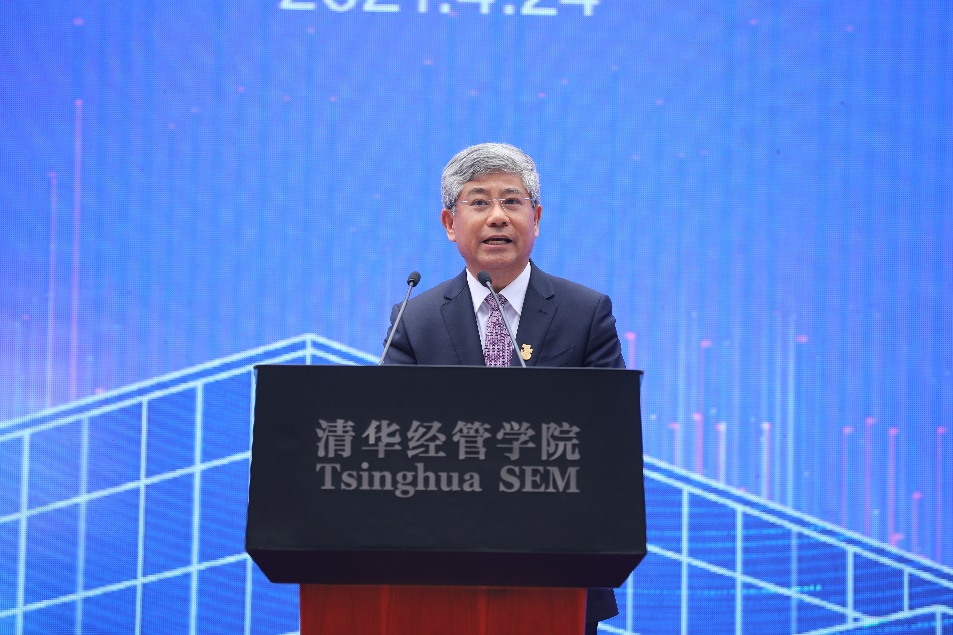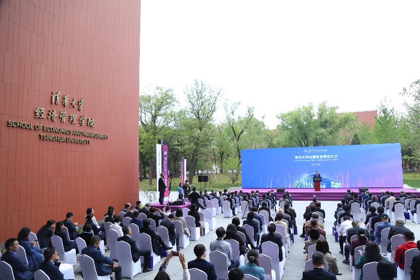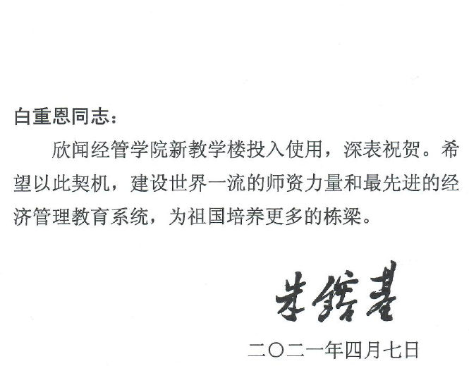 经管学院院长白重恩首先宣读了学院首任院长、中共中央政治局原常委、国务院原总理朱镕基为经管新楼落成所作的批示:“欣闻经管学院新教学楼投入使用,深表祝贺。希望以此契机,建设世界一流的师资力量和最先进的经济管理教育系统,为祖国培养更多的栋梁。”