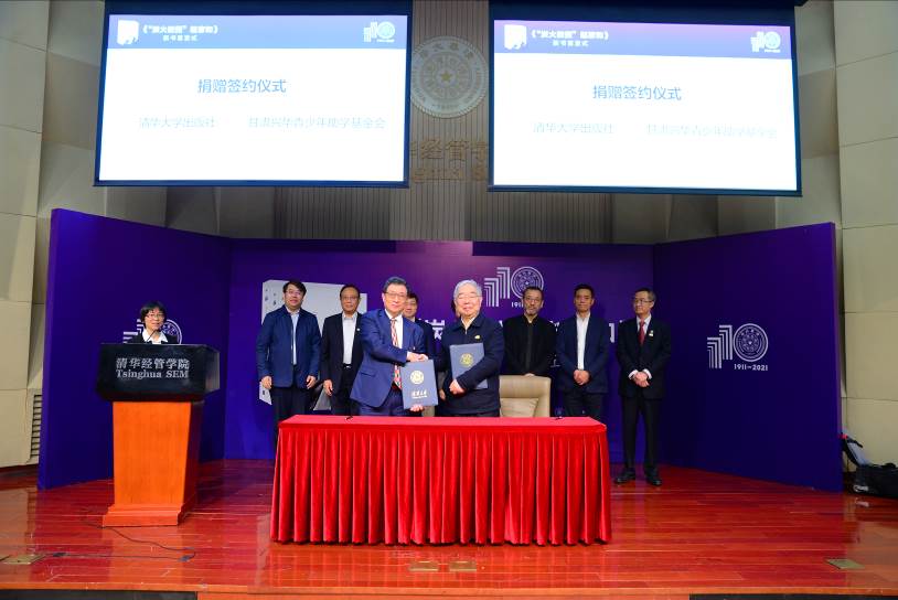 顾军营、袁桅、李勇、陈章武代表各方签署了捐赠协议。连辑,韩景阳,许庆红,甘肃兴华青少年助学基金会常务副理事长李俊,乐鱼在线平台甘肃校友会会长马文杰,乐鱼在线平台河南校友会荣誉会长孙光华,清华经管学院党委副书记、副院长钟笑寒见证签约。