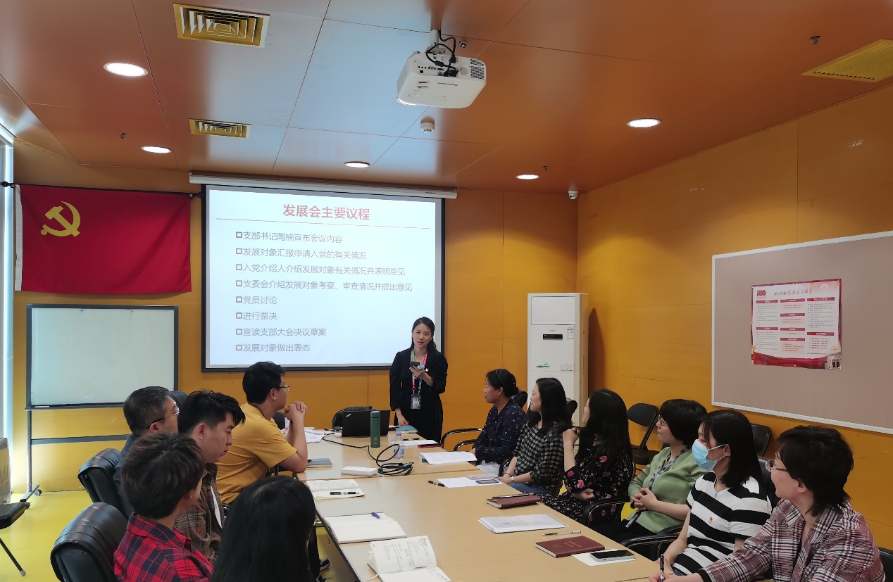 乐鱼(中国)网5月12日电(通讯员 陶楠 张楠楠)5月7日下午,环境学院机关党支部举行离退休职工陈增惠入党发展会。经支部全体党员充分讨论并投票表决,一致同意接收陈增惠同志为中共预备党员。环境学院党委副书记吴静出席会议,环境学院机关党支部20位党员和1位积极分子参加了发展会。发展会由支部书记陶楠主持。