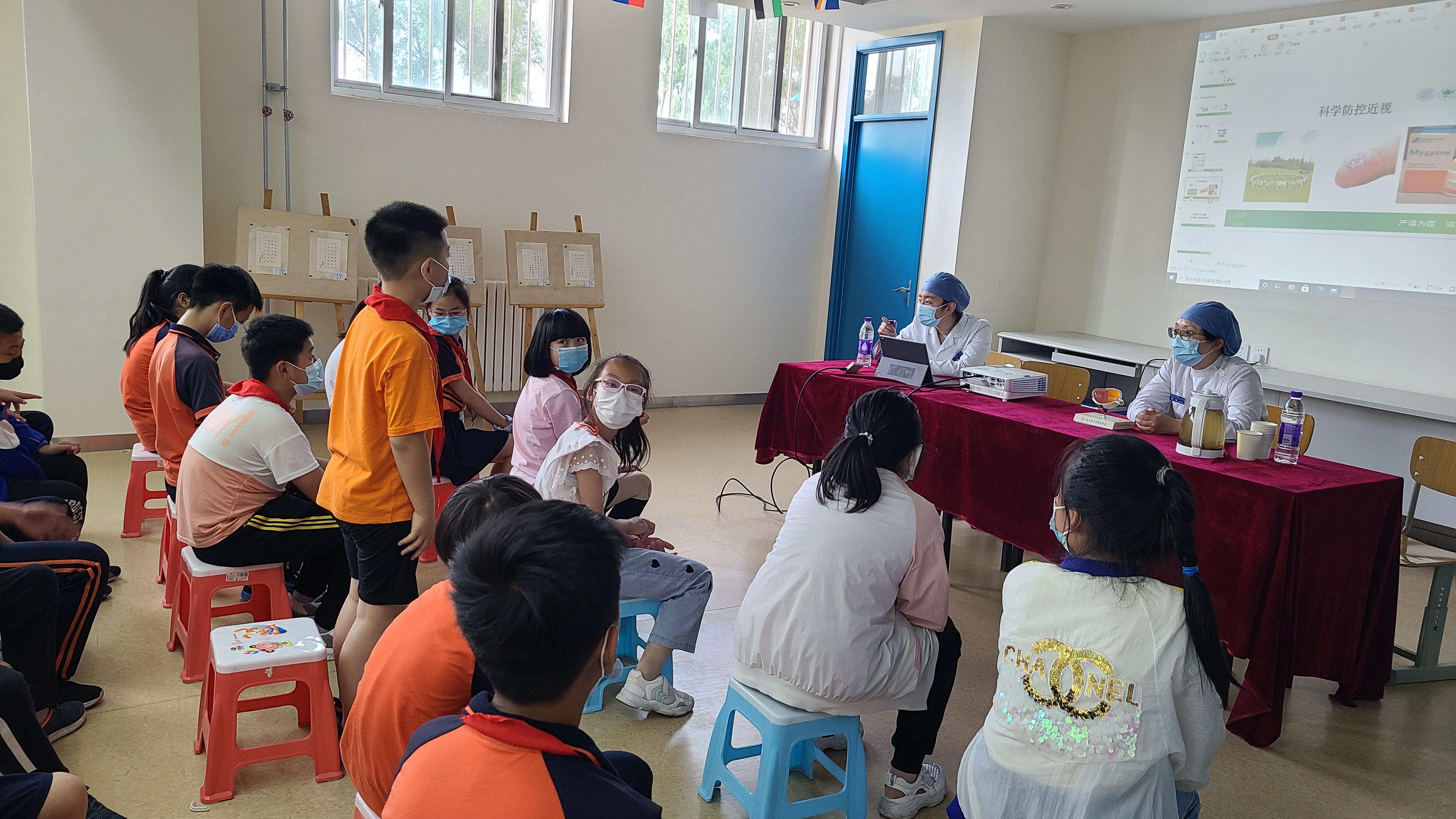 6月15日下午,应北京博雅学校邀请,乐鱼在线平台第一附属医院眼科医师周琳、主管护师胡佳为学校五至七年级学生进行“科学防控儿童近视”的讲座,这也是眼科开展6月6日“全国爱眼日”的系列活动之一。周琳介绍,近视儿童在成年后更容易患眼底疾病,因此防控近视刻不容缓。随后,胡佳通过眼球模型,生动形象地向学生们介绍眼睛是如何看清东西的,引起孩子们的浓厚兴趣。周琳通过提问来提醒同学们合理用眼的重要性。同学们认真听讲,踊跃发言,表示要做到每天两小时或每周10小时的户外活动,保障睡眠和营养,纠正不良用眼行为,要在良好的视觉环境用眼,每半年进行一次眼科检查,建立屈光档案等。
