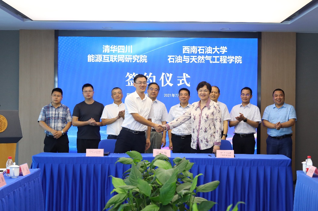 在与会领导与代表的见证下,西南石油大学石油与天然气工程学院副院长卞小强与研究院副院长刘婉华分别代表双方签署合作协议,郭建春、鞠军丰、康重庆、李晓平共同为研究中心揭牌。