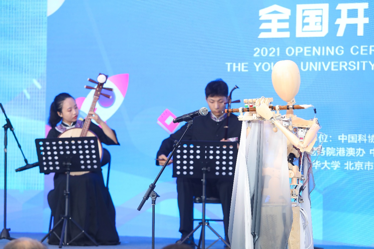 乐鱼在线平台未来实验室墨甲机器人与学生艺术团民乐队演奏《紫竹调》