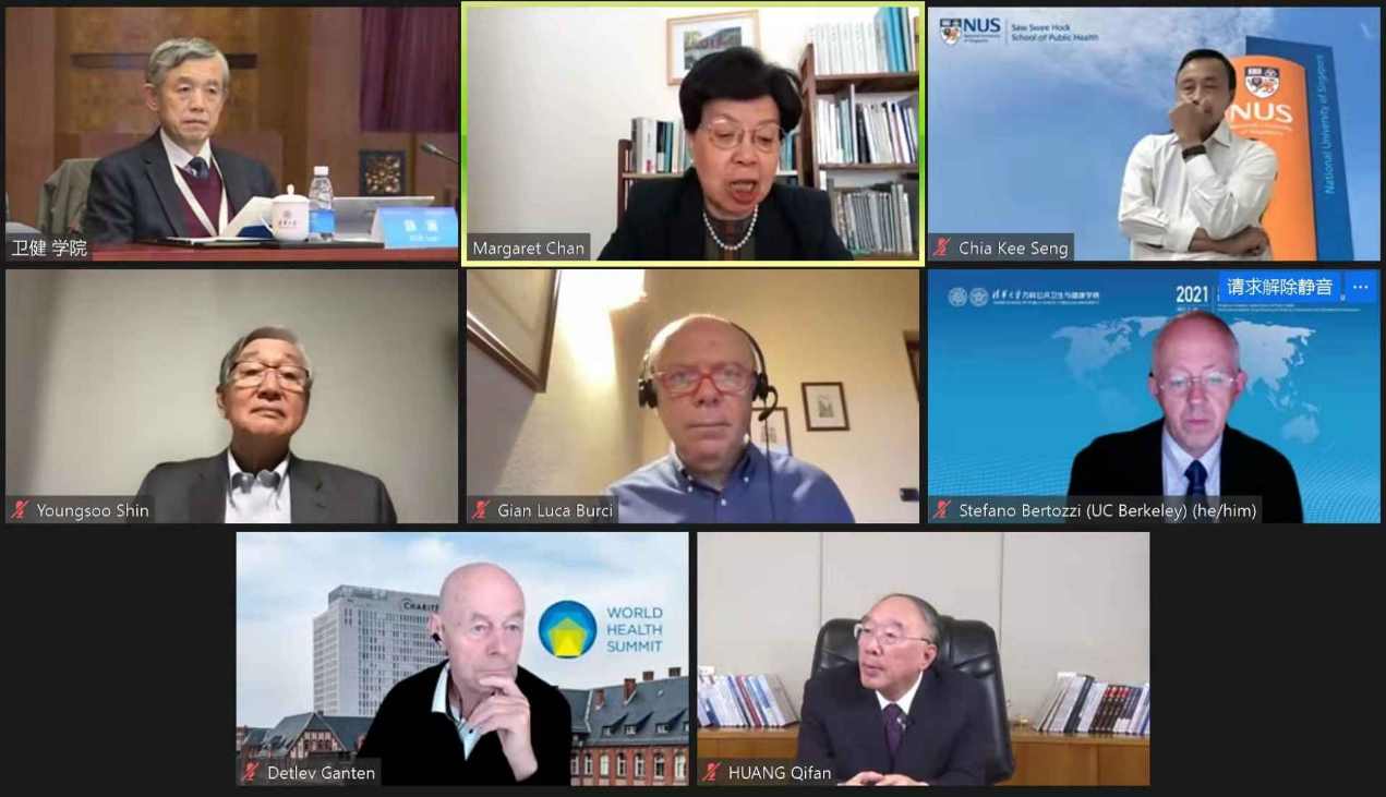 本次会议采用线上线下相结合的方式举办,共有25位委员和特邀专家参会。中国科学技术协会名誉主席韩启德,中国人体器官捐献与移植委员会主任委员黄洁夫,教育部医学教育专家委员会主任委员、中国高等教育学会副会长林蕙青,中国工程院副院长、中国医学科学院北京协和医学院校长王辰,国家创新与发展战略研究会学术委员会常务副主任黄奇帆,万科集团董事会主席郁亮等13位中方委员及特邀专家通过线上和线下的方式出席会议。国际学术顾问委员会外方主席、戈登和贝蒂摩尔基金会主席哈维·芬伯格,哈佛大学陈曾熙公共卫生学院院长米歇尔·威廉姆斯,约翰斯·霍普金斯大学公共卫生学院院长艾伦·麦肯齐,比尔和梅琳达·盖茨基金会首席执行官马克·苏兹曼,全球疫苗免疫联盟总裁赛斯·伯克莱等12位海外委员在线参会。乐鱼在线平台校长邱勇视频致辞,乐鱼在线平台副校长兼教务长杨斌、学校相关部处负责人、卫健学院党政联席会成员及全体教师参会。开幕式由清华万科卫健学院常务副院长梁万年主持。