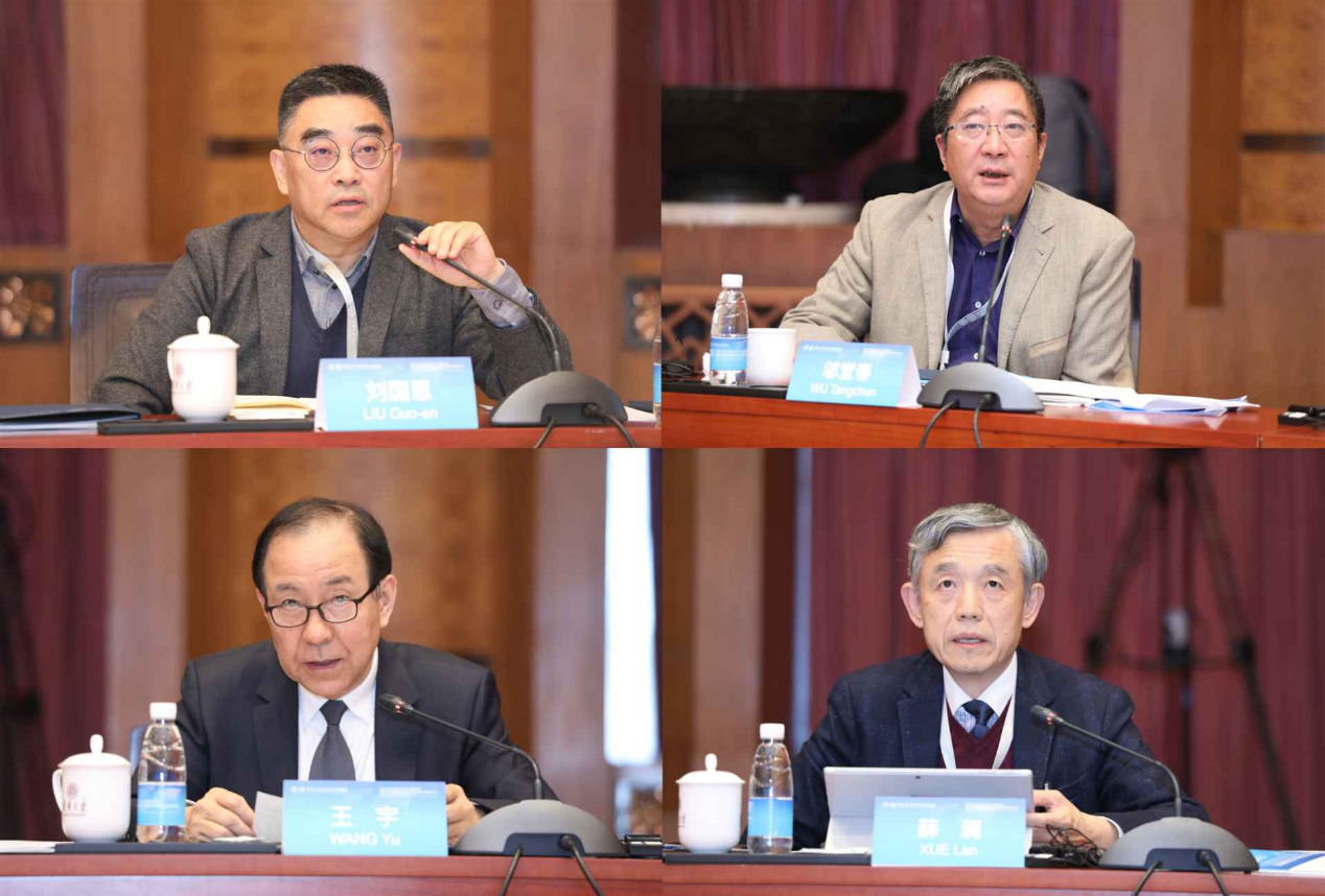 黄洁夫、林蕙青、饶克勤、王辰、刘国恩、邬堂春、王宇、薛澜分别发言(从左至右、从上至下)