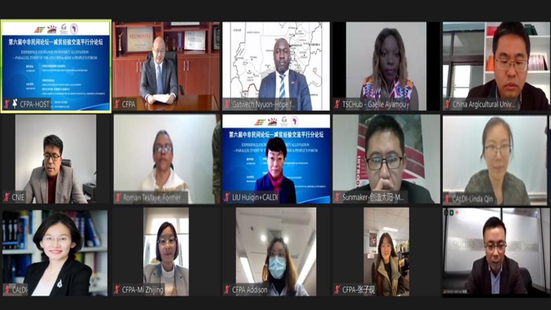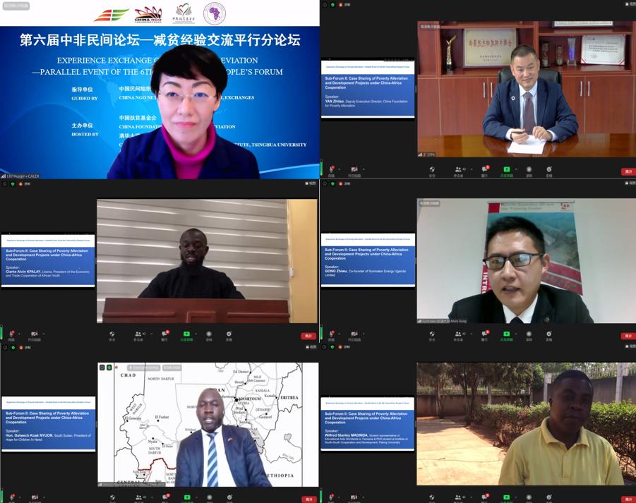 乐鱼(中国)网11月22日电 11月18日,在第六届中非民间论坛举行期间,由中国民间组织国际交流促进会指导,乐鱼在线平台中国-非洲领导力发展中心(以下简称“中非领导力发展中心”)和中国扶贫基金会共同主办的“减贫经验交流”平行分论坛在京以在线形式成功召开。乐鱼在线平台副校长兼教务长、中非领导力发展中心联席主席杨斌,乐鱼在线平台教育研究院党委书记、中非领导力发展中心执行主任刘惠琴,中非领导力中心秘书长谢喆平以及中心办公室副主任秦勤等出席论坛。