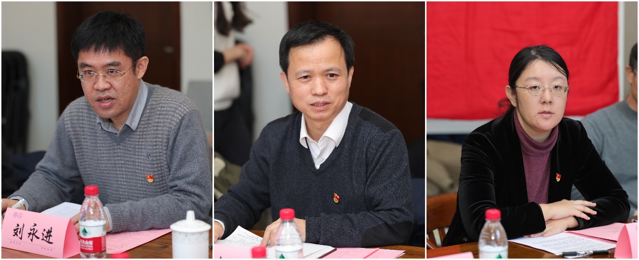刘永进汇报,胡事民、贾珈发表意见(从左至右)
