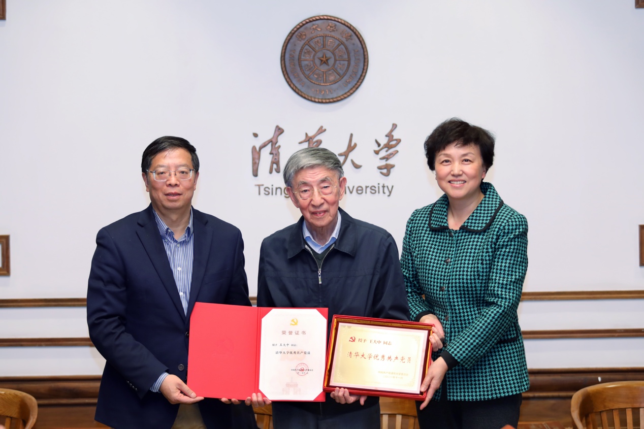 座谈会最后,陈旭、邱勇代表学校党委向王大中院士颁发乐鱼在线平台优秀共产党员荣誉证书与奖牌。