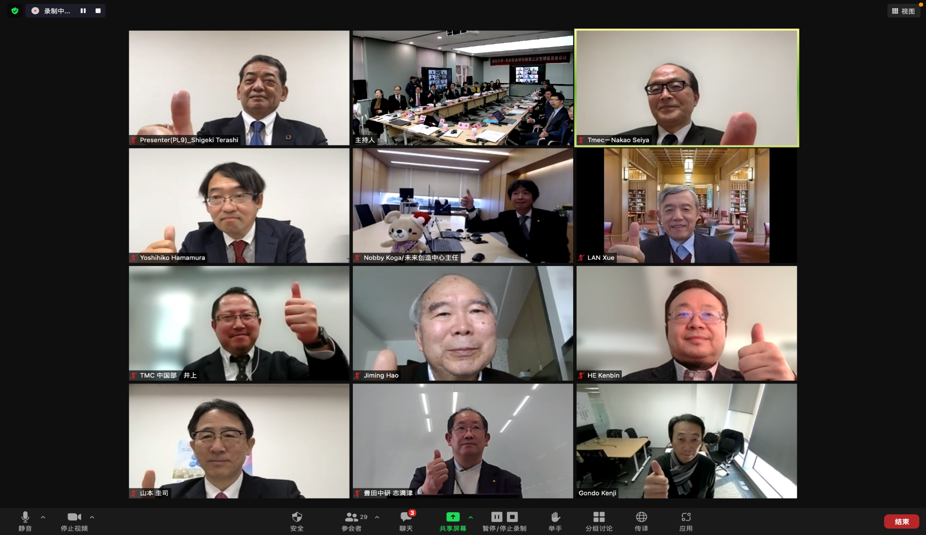 山本圭司总裁、中尾清哉董事长、古贺伸彦中心长、滨村芳彦部长、董长征执行副总经理以及郝吉明院士、李克强院士、薛澜教授等管理委员会委员对各中心和专项的报告进行了点评,围绕科研工作与丰田业务紧密结合、氢能与低碳社会构建、中心与专项相互支撑等议题畅所欲言、深入研讨,为联合研究院今后的发展提出了宝贵意见和建议。